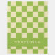 Personalised Name Retro Aesthetic Chequerboard Pattern Green and White Fleece Blanket