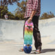 Ride with colour and confidence on this rainbow diamond gradient skateboard deck. Featuring a smooth blend of hues from soft pink and peach to vibrant greens, blues, and purples, the layered diamond pattern adds a bold geometric twist. Ideal for skaters who love expressive, artsy, or pride-inspired gear that stands out at the skatepark or on display.
