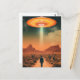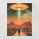 AI generated art made to look like a vintage art of a man walking alone in the desert about ready to be abducted by aliens