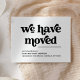 This trendy, boho style black and white moving announcement says "we have moved" in retro black typography on a simple white background. The perfectly stylish way to let friends and family know that you have a new home.