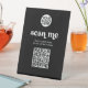 This trendy, boho black small business tabletop pedestal sign features white retro typography, on a dark black background. There is room for your logo, and a scannable QR code for any purpose. Add any QR code that you wish, and change the text accordingly. A look that is both professional and stylish, and perfect for any type of occupation, such as makeup artist, hair salon stylist, spa, and more.