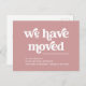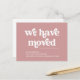 This trendy, boho style moving announcement says "we have moved" in retro white typography on a simple dusty rose pink background. The perfectly stylish way to let friends and family know that you have a new home.