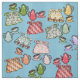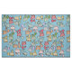 Playful, Retro, cartoon style pattern features an array of cute aprons, teapots & cups and saucers in typical 1940's - 1950's shades of pink, strawberry, lemon, avocado green, and lavender set against a background of light sea blue w/ white pin dots. Perfect for sewing your own aprons, kitchen curtains, chair pads, and more!