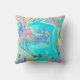 Retro Aqua Blue Liquid Art on Abstract Hydrangeas Cushion