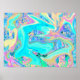 Retro Aqua Blue Liquid Art on Abstract Hydrangeas Poster