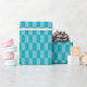 Retro Aqua Blue Tonal Chequerboard Pattern Wrapping Paper