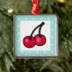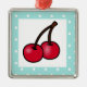 Retro Aqua Dots Cherries Metal Tree Decoration