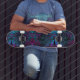 Retro Aqua Magenta and Black Abstract Swirl Skateboard