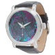 Retro Aqua Magenta and Black Abstract Swirl Watch