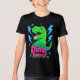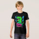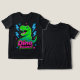 This 90s arcade-style T-Rex t-shirt features a pixelated green dinosaur with electric blue and hot pink accents. It brings 'Dino Power!' to life with a nostalgic, slightly distressed texture.