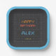 These awesome gamer theme birthday party plates with a vintage arcade game vibe feature retro lettering on a dark grey and white dot matrix grid. "Happy Birthday [Name]" appears in retro digital lettering, with "Level [age]" beneath.