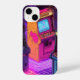 A group of vintage arcade machines stands illuminated by vibrant neon lights. The scene is set against a backdrop of a starry galaxy, creating a nostalgic yet futuristic atmosphere.