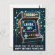 Celebrate birthdays in style with this vibrant retro arcade-themed design. Featuring a glowing neon arcade machine, pixel art "Level Up!" text, and confetti with gaming-inspired details, it’s perfect for gamers and nostalgia lovers. Ideal for a fun, unique birthday celebration!