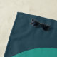 Funky 1970s vintage typography personalised name beach towel with cool arch in blue green yellow and orange. A great 70s hippie vibe custom beach towel for the summer. Original artwork by artist Catherine Sweetman