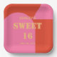 Retro Arch Pink & Orange Sweet 16 Birthday Paper Plate