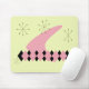 50's style Retro Mousepad with blue and Pink and Black Argyle pattern, Pink Boomerang, and Green stars/atoms. Let's go back to the Fifties and Mid Century Modern. This design is very customisable. Each element is a separate image. They have been resized but are quite large and can be sized as you with, moved, rotated, or removed. Background colour can be changed. Personalise with your favourite photos, artwork or text.
