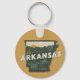 Stylish keychain features retro style Arkansas state silhouette and lettering. Customise with name or message on back.