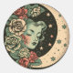 Retro Art Deco Green Crescent Moon Lady Classic Round Sticker