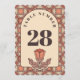 Add a touch of retro sophistication to your wedding reception with this elegant table number. Featuring an Art Nouveau-inspired design and a Mid-Century Modern earth-tone palette, this card helps guide your guests in style. The arched frame and central botanical illustration create an artistic focal point on every table.