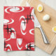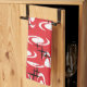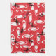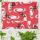 Retro Atomic Age Swirls Stars Pattern Red Tea Towel