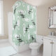 Retro Atomic Age Swirls Stars Pattern Sage Green Shower Curtain
