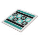 A contemporary abstract art design with simple squares and thick lines in turquoise and teal blue