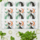 Cool retro, mid century modern image of two Atomic Cats one black one turquoise, with beautiful big eyes, and orange crescent Moon and stars.