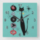 Retro Atomic Era Mid Century Modern MCM Cool Cat 3 Square Wall Clock