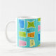 This Retro Atomic Kitsch Mug features so many kitschy shapes and so many kitschy patterns. The Palm Springs inspired pattern features a turquoise background and oodles of wonderfully 1960’s line drawings. It’s almost too cute to describe! A vintage, pink shape features a retro trailer and car. A yellow block features a juke box. A blue shape features a sophisticated woman carrying a martini. A green space age shape holds a starburst clock and a classic television set. A lime block has a cat and a mid century modern record player. And an orange shape features a classic finned car and a roadside diner sign. What’s not to love?