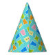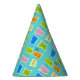 This Retro Atomic Kitsch Party Hat features so many kitschy shapes and so many kitschy patterns. The Palm Springs inspired pattern features a turquoise background and oodles of wonderfully 1960’s line drawings. It’s almost too cute to describe! A vintage, pink shape features a retro trailer and car. A yellow block features a juke box. A blue shape features a sophisticated woman carrying a martini. A green space age shape holds a starburst clock and a classic television set. A lime block has a cat and a mid century modern record player. And an orange shape features a classic finned car and a roadside diner sign. What’s not to love?