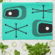 This mid century modern style art pattern has abstract geometric shapes that resemble old fashioned televisions, as well as sputnik starbursts which is a staple of 1950s designs.