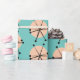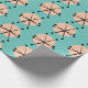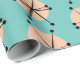 Fun retro pattern features black mid-century atomic stars graphic on pink disc with light blue background