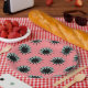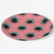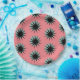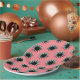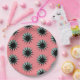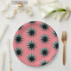 Fun mid-century retro atomic sunburst pattern in turquoise and black on pink background.