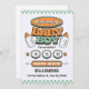 Celebrate your little guy in style with this retro-inspired baby shower invitation! Designed with nostalgic charm and playful energy, this card features bold “Baby Boy” typography, baby bottles, and a cool chequered border — perfect for fun-loving families. The vintage orange and mint green palette adds a splash of character, making this a memorable invite for your big celebration.
