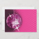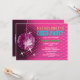 © Socialite Designs Inc. Celebrate the bride-to-be bachelorette party by sending out these fun pink disco ball party invitations. Easily customise the text for your event by replacing the template text. Design incorporates a magenta disco ball, pink background with reflections and starbursts that can be moved and resized. The text is made to look like neon lights.