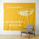 personalized retro bachelorette party tapestry in mustard and white with a cocktail glass is perfect as a bachelorette party photo backdrop. Celebrate your bridal shower in style with the perfect cocktail party theme in mustard yellow and white, the perfect theme for the nostalgic vintage 70s bride and her bridesmaids.