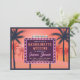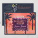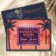Retro roadside billboard themed bachelorette weekend party invitation. Bright bold colors and neon lights are used to glam up the invite. Includes a bit of vintage vibe. Appropriate for tropical destinations with palm trees and cocktails. Personalize text on front and back.