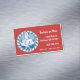 A red white and blue retro style barber badge on red background.  Customise with barbershop details in white font.