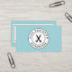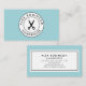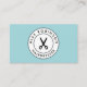 A retro modern business card featuring a circular black and white logo on the front on a blue background. The background colour can be changed to anything that matches your business. This would be perfect for a hairdresser, hair salon or a barber as the logo features a pair of scissors. It would also suit a seamstress, tailor or anyone else that works with scissors.