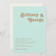 This retro beach | aqua wedding invitation is perfect for your simple vintage, colourful tropical boho summer wedding. Its unique bohemian mid-century font gives this design a classic minimalist groovy hippie vibe. Suppose you're looking for a design that features bright, rustic coastal ocean colours for your creative 70's destination beach wedding. In that case, this product, and its coordinating wedding collection, are what you're looking for. Feel free to change the colour add your own artwork, graphics, or photos. If you have any questions about the design of this product, please feel free to reach out to us!