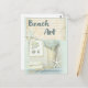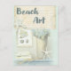 Retro beach art, including starfish, books, blue flowers in a vase, painting of fish and clams, and sand dune grass with retro lined paper at top. Ideal for your vacation travel beach destination or new hobby type cards. Let us help you customise by sending us a chat message.