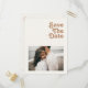 This retro beach | ivory photo save the date invitation postcard is perfect for your simple vintage, colourful tropical boho summer wedding. Its unique bohemian mid-century font gives this design a classic minimalist groovy hippie vibe. Suppose you're looking for a design that features bright, rustic coastal ocean colours for your creative 70's destination beach wedding. In that case, this product, and its coordinating wedding collection, are what you're looking for. Feel free to change the colour add your own artwork, graphics, or photos. If you have any questions about the design of this product, please feel free to reach out to us!