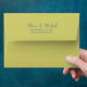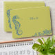 Seaside on the beach fun striped citrus green and blue playful unique wedding invitation return address personalised envelopes featuring hand drawn starfish and ocean corals, and a chic whimsical handwritten calligraphy script. +++++++ All colours are editable. +++++++++ Suitable for casual trendy beach coastal summer destination weddings.