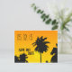 Retro Modern Beach Wedding Save the Date Postcards. Destination Wedding Save the Date Announcements with black silohette palm trees on a yellow background. Personalise Your Save the Date Announcements for your beach wedding. OntheBeachWeddings ©
