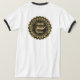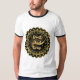 Let your Father's Day Gift - a T-Shirt be as unique as him! Retro gold calligraphy on a black background with swirls is just right for Father's Day gift. The illustration features golden swirls on a black geometrical circle. The TEXT in the centre has a floral border and is customisable.