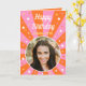 Say "Happy Birthday" with this retro style birthday card, including a personalised name and two photographs. A fun design for family, kids, friends or pets! Colourful palette of pink, orange, yellow and white.