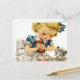 Retro Birthday Girl Cake Cat Children Artwork Postcard