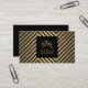 A black box containing a stylish initial monogram with your name or business name really stands out on this optical black and faux matte gold patterned business card. © 1201AM CREATIVE