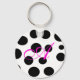 Did you love the poodle skirt look? The whimsy of black and pink and polka dots? Well we have a cute little key chain, for you, that's white with black polka dots and has a customisable pink script monogram. Fun, and makes a nice little gift too.