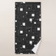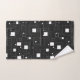 This image features a modern, abstract geometric pattern in black and white. It consists of various-sized squares and rectangles arranged randomly across a black background. Some shapes are solid white, while others are outlined, creating a layered effect. Small dots and pixel-like elements are scattered throughout, adding depth and texture. The overall design is minimalistic and conveys a digital or futuristic aesthetic.
